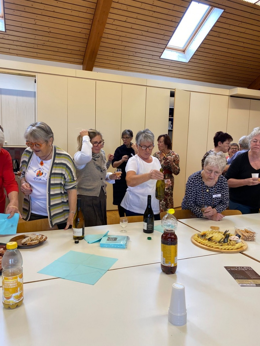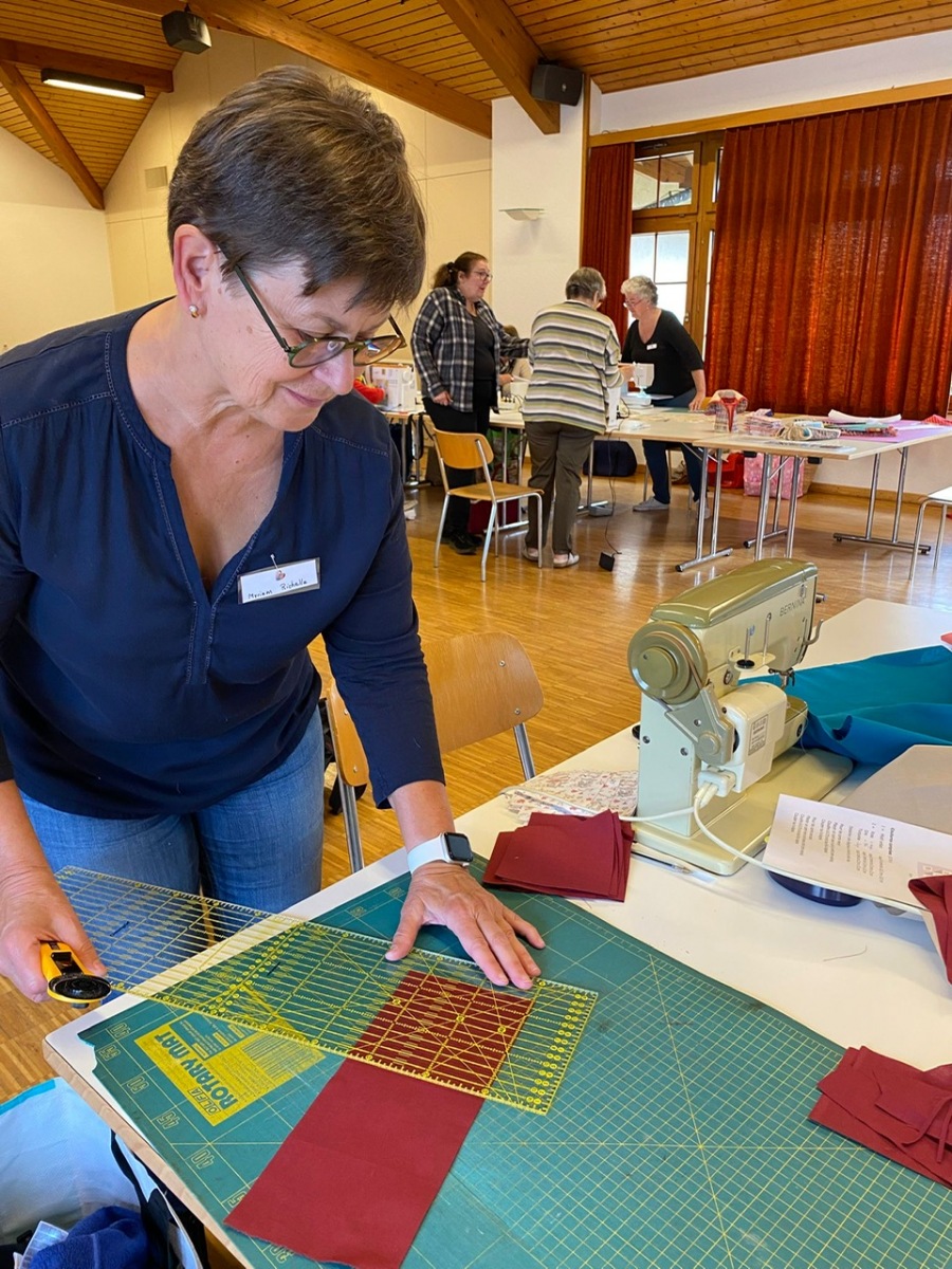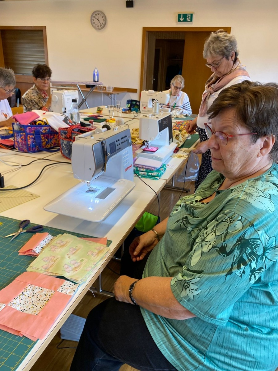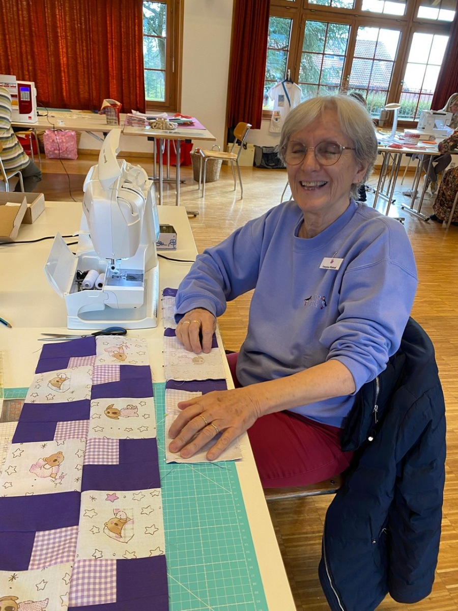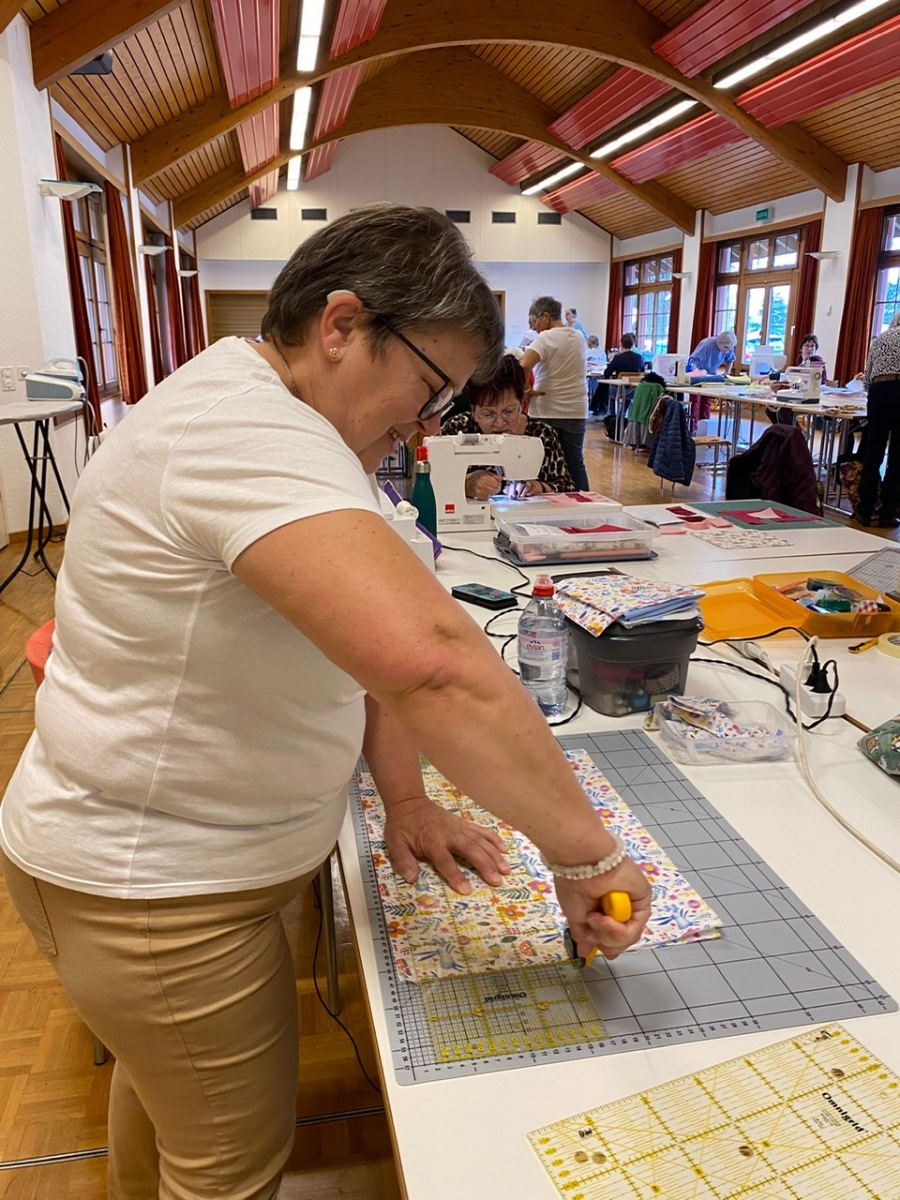 Hier, samedi 15 novembre, a eu lieu notre rencontre pour la confection des Couettes du Coeur. Nous avons passé une très bonne journée, avec une belle ambiance. Comme à leur habitude, Marianne Margot et son Maillon nous ont reçues comme des reines. Tresse et petits pots de confiture ou chocolat avec un excellent café. Pour l’apéro, plats de fromage et viande froide avec un excellent vin de la région. Le nouveau modèle a fait sensation. Les couturières présentes l’ont bien apprécié et plusieurs d’entre elles l’ont exécuté avec succès. Merci à Thierry pour la marche à suivre, elle était parfaite. Corinne Vaucher nous a gâtées avec sa jolie trousse garnie de tissus. Les dames l’ont bien aimé et le Maillon de Fribourg fera même un défi avec ce beau tissu ! On se réjouit déjà d’en admirer le résultat. Merci à toutes pour votre présence et votre bonne humeur !