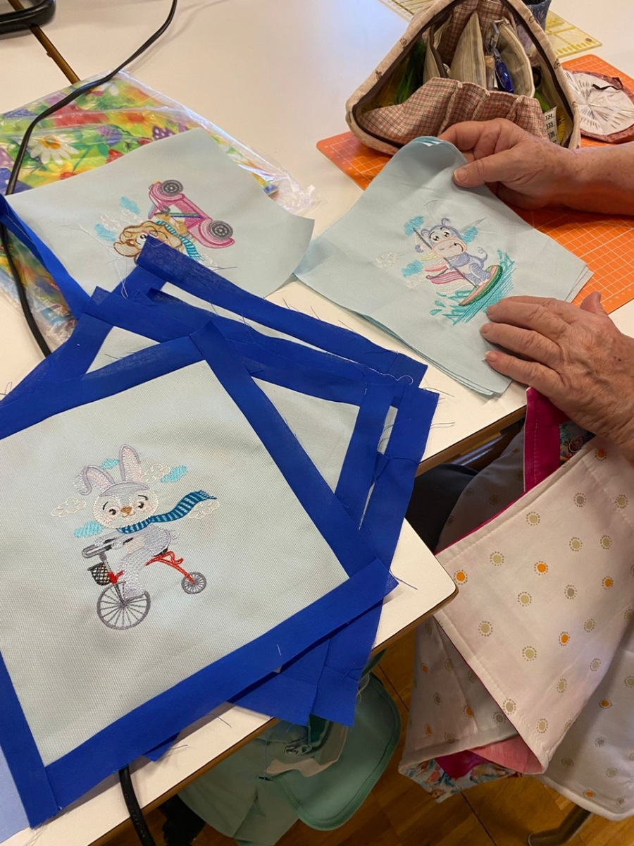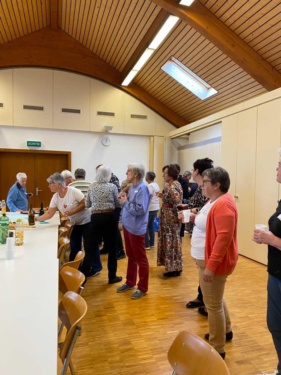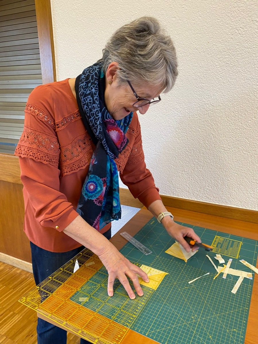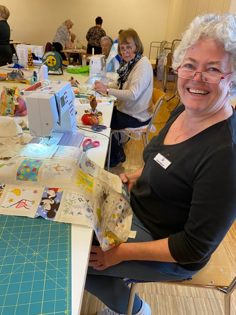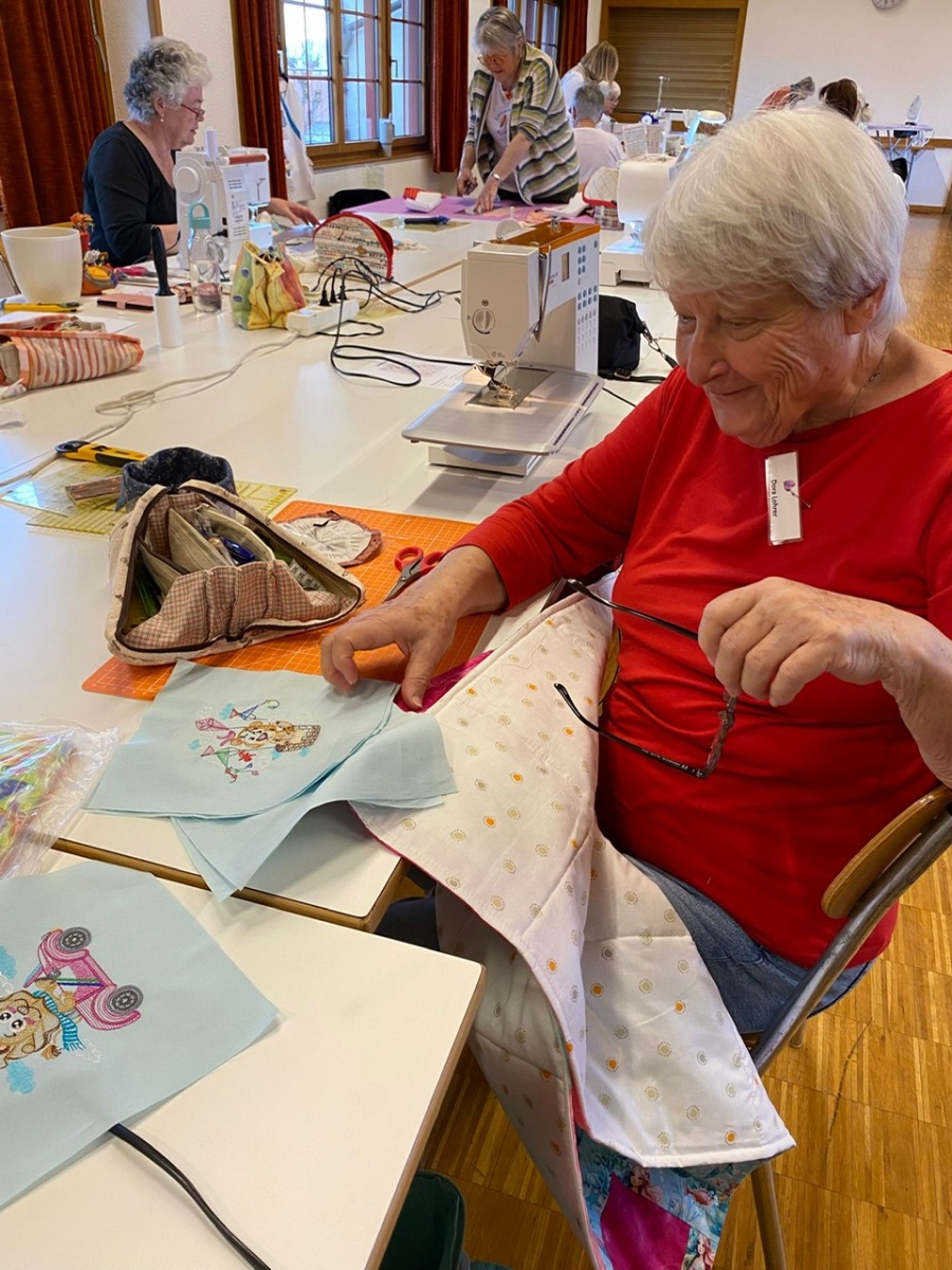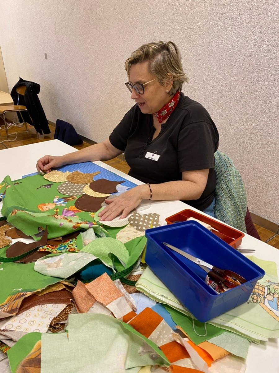 Hier, samedi 15 novembre, a eu lieu notre rencontre pour la confection des Couettes du Coeur. Nous avons passé une très bonne journée, avec une belle ambiance. Comme à leur habitude, Marianne Margot et son Maillon nous ont reçues comme des reines. Tresse et petits pots de confiture ou chocolat avec un excellent café. Pour l’apéro, plats de fromage et viande froide avec un excellent vin de la région. Le nouveau modèle a fait sensation. Les couturières présentes l’ont bien apprécié et plusieurs d’entre elles l’ont exécuté avec succès. Merci à Thierry pour la marche à suivre, elle était parfaite. Corinne Vaucher nous a gâtées avec sa jolie trousse garnie de tissus. Les dames l’ont bien aimé et le Maillon de Fribourg fera même un défi avec ce beau tissu ! On se réjouit déjà d’en admirer le résultat. Merci à toutes pour votre présence et votre bonne humeur !
